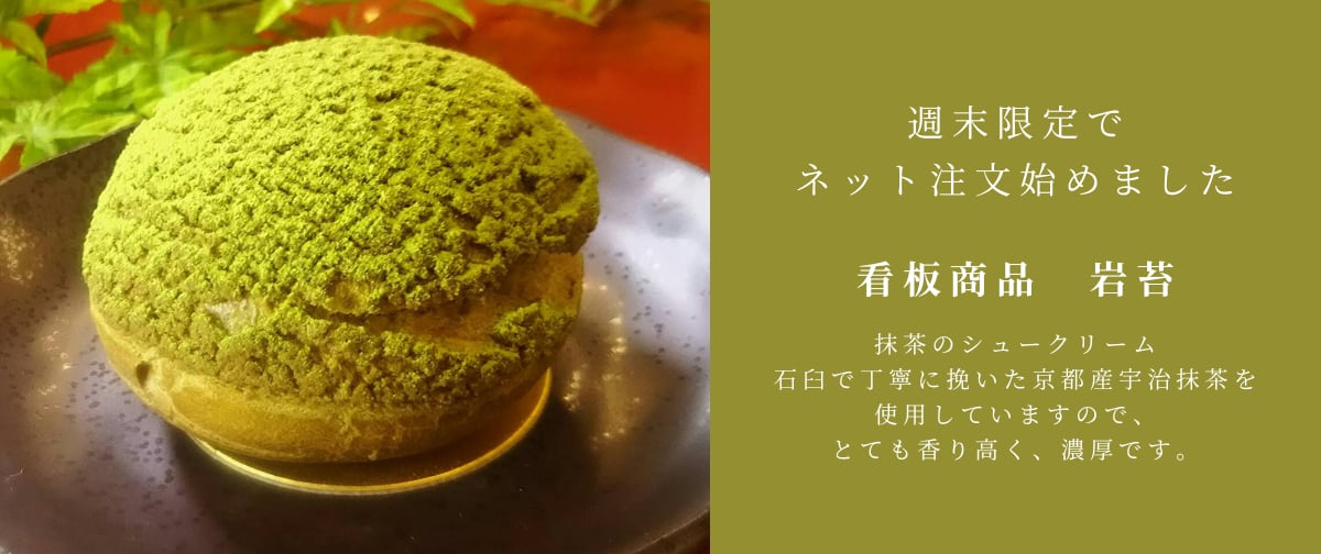 土日限定でネット注文を出来るようにしました。 お渡し日は、2日先から1週間先まで注文可能です。 岩苔 iwagoke 抹茶のシュークリーム カスタード、シュー皮、クッキー生地、 それぞれに適した抹茶を厳選し、贅沢に使用しております。 石臼で丁寧に挽いた京都産宇治抹茶を使用していますので、とても香り高く、濃厚です。 消費期限:当日